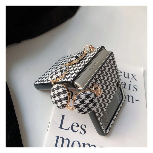 Chic and Elegant Houndstooth Button Phone Case For Samsung Galaxy Z Flip 3 5G