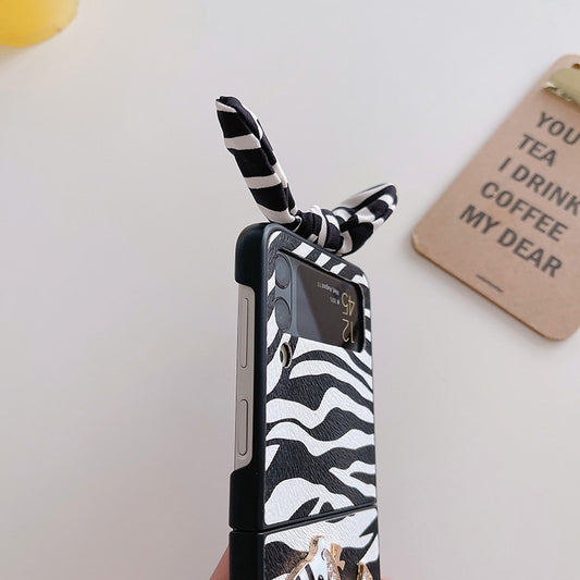 Cute 3D Bling Rhinestone Zebra Phone Case For Samsung Galaxy Z Flip 3 5G Back Cover with Bow Ear