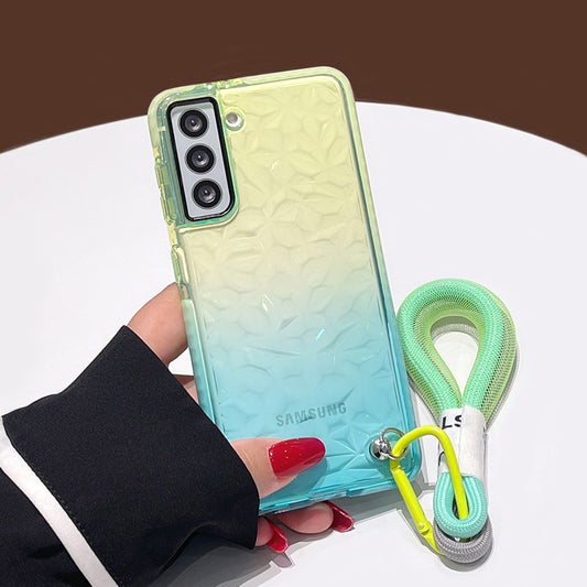 Diamond Pattern Hand Strap Clear Case For Samsung S22 Series