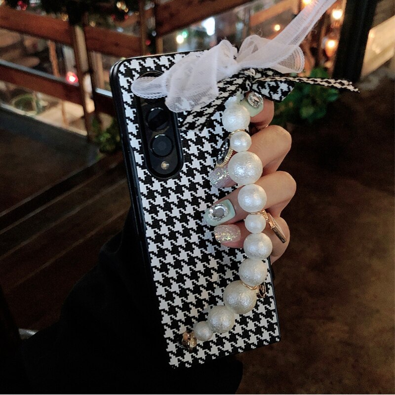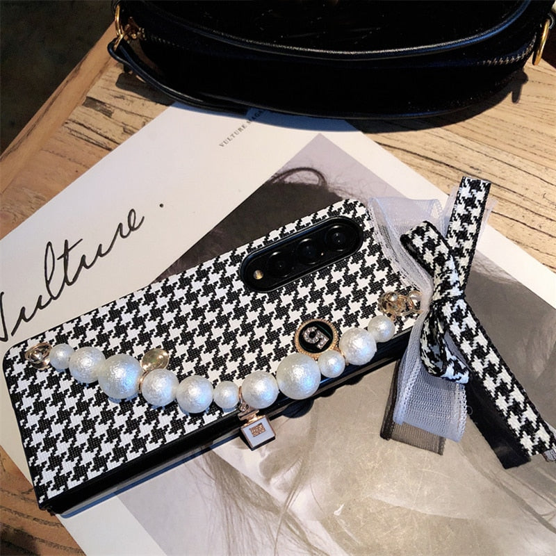 Chic and Elegant PU Leather Houndstooth Phone Case For Samsung Galaxy Z Fold 3