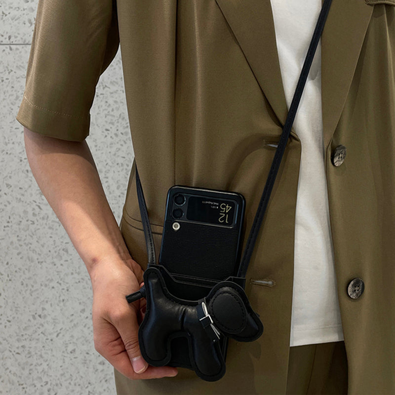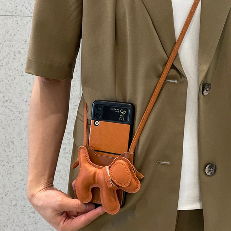 Cute 3D Dog Card Holder PU Leather Phone Case For Samsung Galaxy Z Flip 3 5G Cover with Crossbody Rope