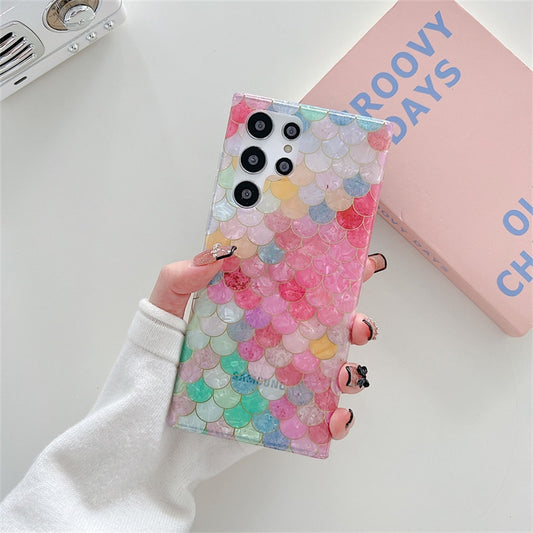 Square Colorful Fish Scales Pattern Electroplated Phone Case For Samsung S22 Series