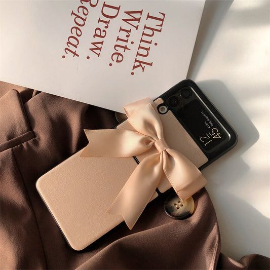 Cute Champagne Silk Ribbon Bowknot Phone Cover For Samsung Galaxy Z Flip 3 5G