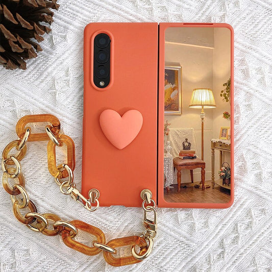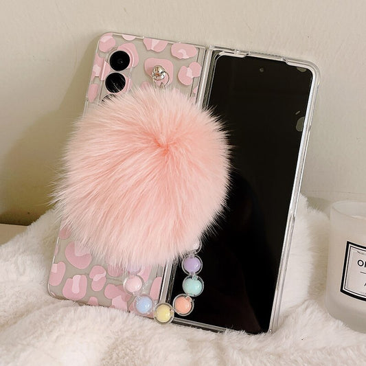 Cute Love Hair Ball Bracelet Phone Cases For Samsung Galaxy Z Fold 3