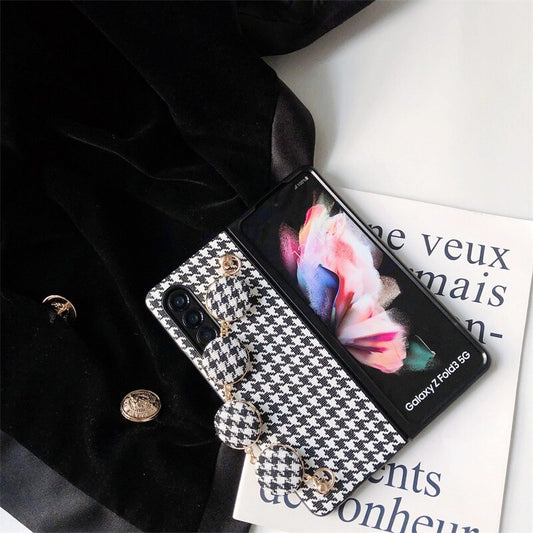 Chic and Elegant PU Leather Houndstooth Phone Case For Samsung Galaxy Z Fold 3