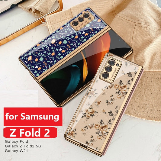 Luxury Floral Tempered Glass Case for Samsung Z Fold 3