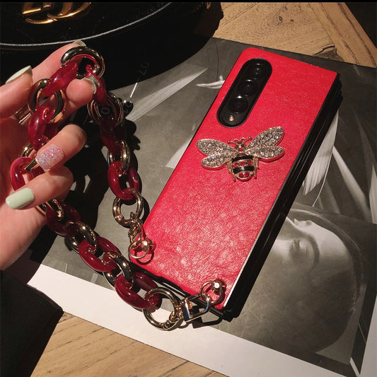 Woman Luxury Rhinestone Honeybee PU Leather Phone Case For Samsung Galaxy Z Fold 3 5G