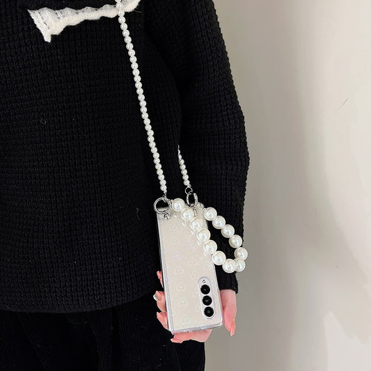 Colorful Love Heart With Portable Bracelet Phone Case For Samsung Galaxy Z Fold 3 5G