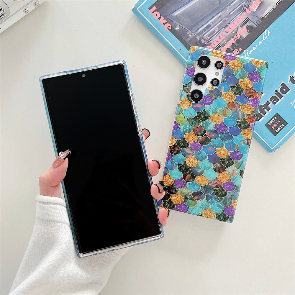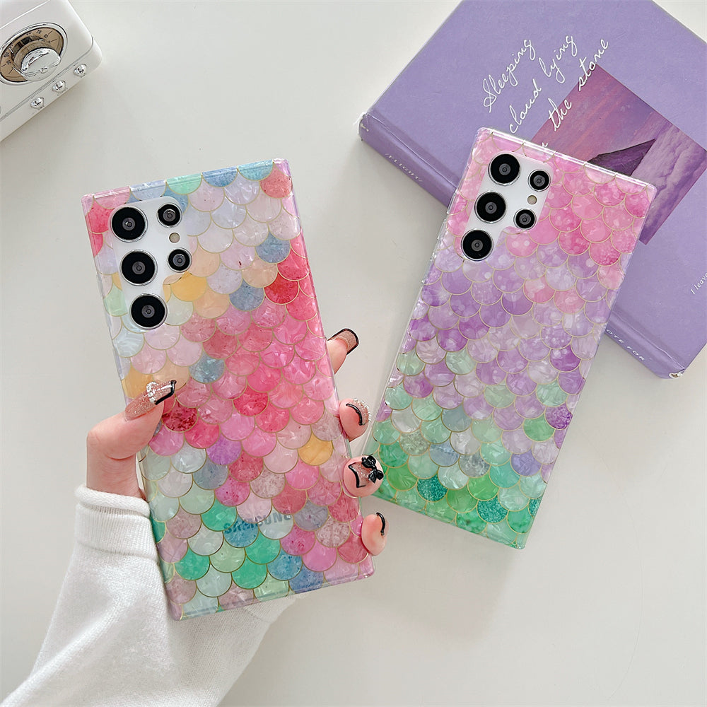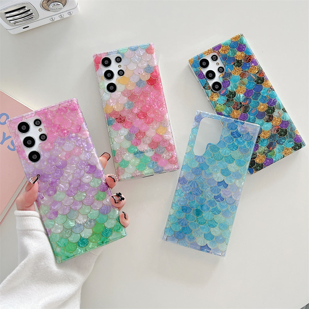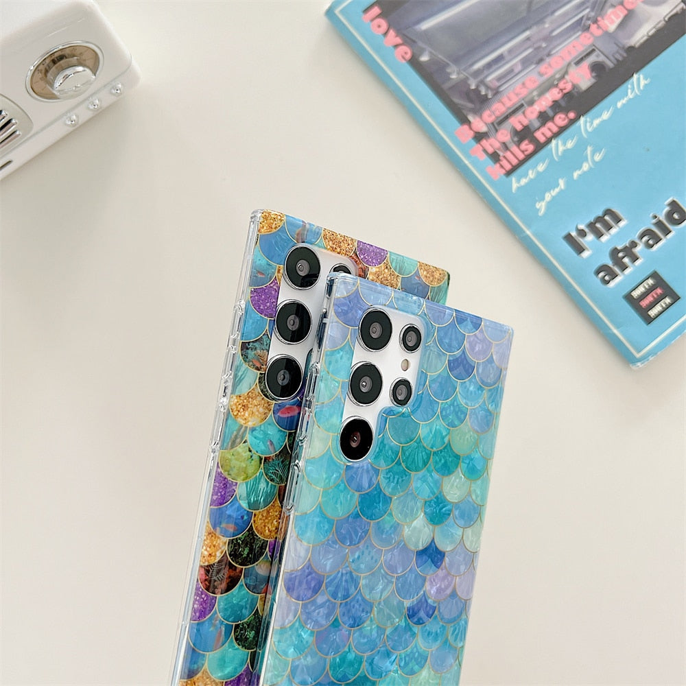 Square Colorful Fish Scales Pattern Electroplated Phone Case For Samsung S22 Series