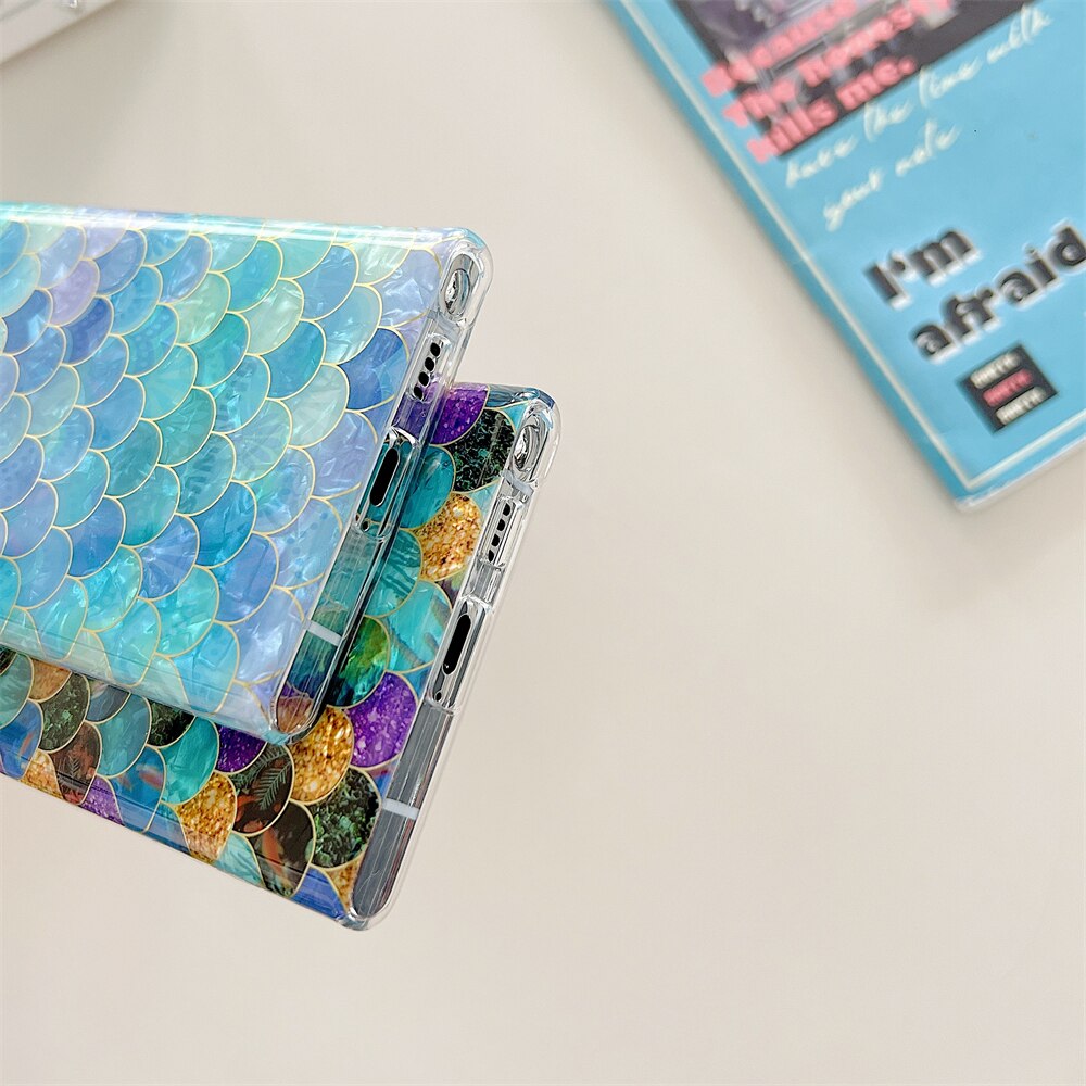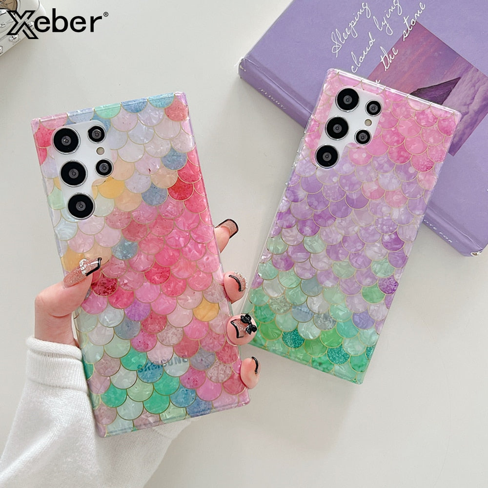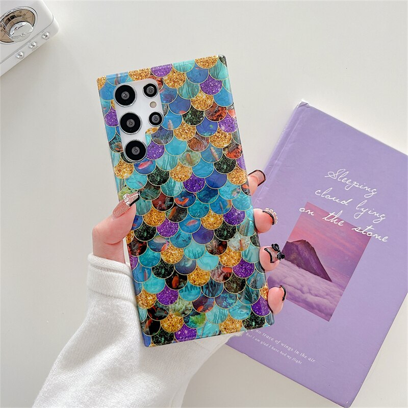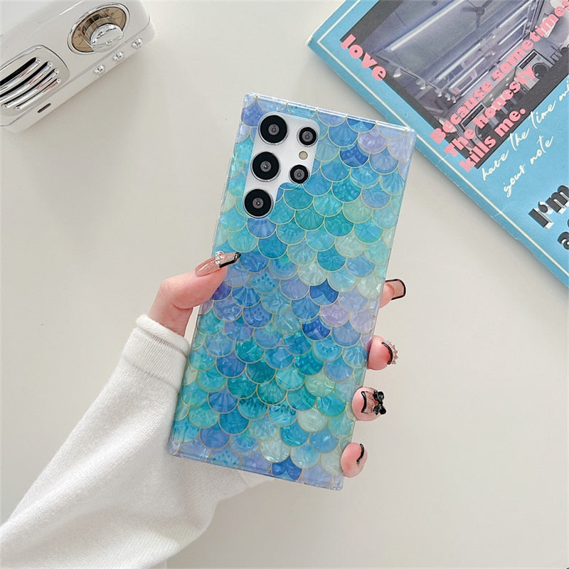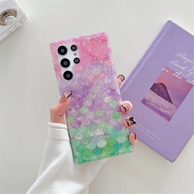 Square Colorful Fish Scales Pattern Electroplated Phone Case For Samsung S22 Series