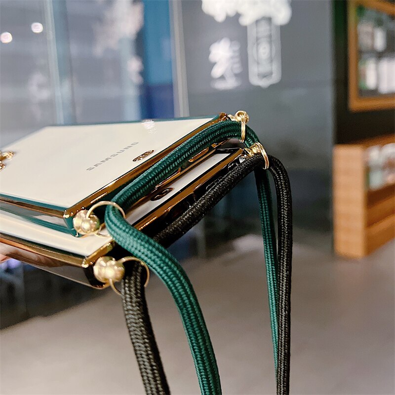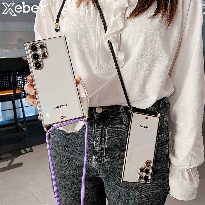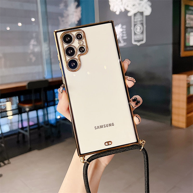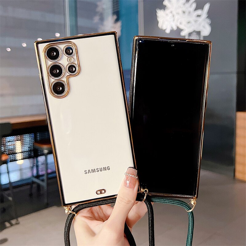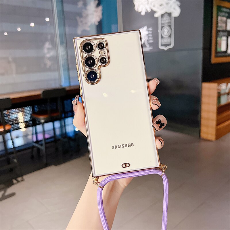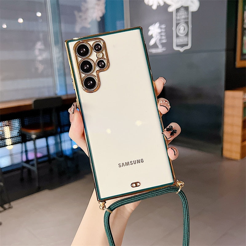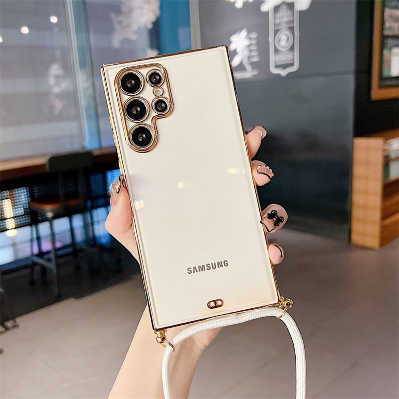 6D Plating Necklace Lanyard Strap Cord Phone Case For Samsung S22 Series