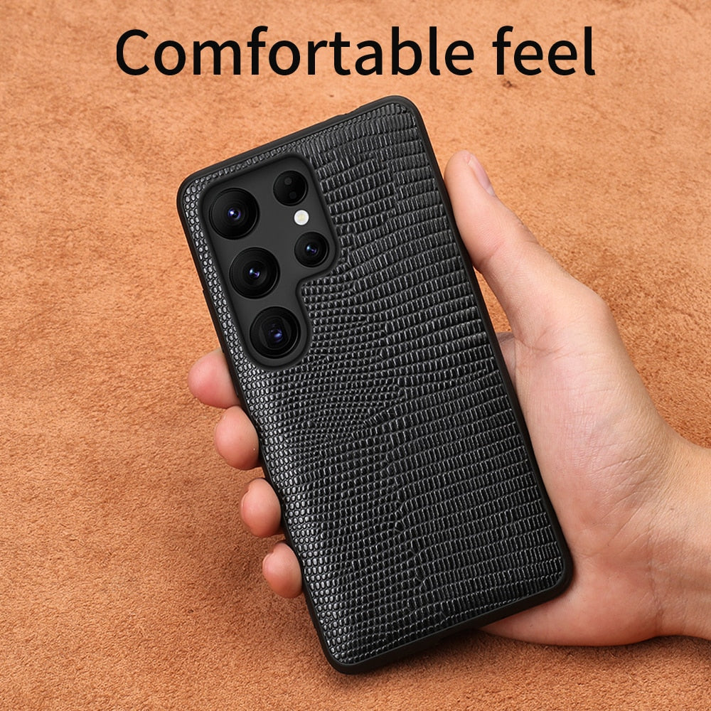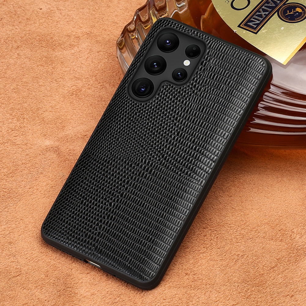 Genuine Leather Lizard Grain Case For Samsung Galaxy S22 Ultra