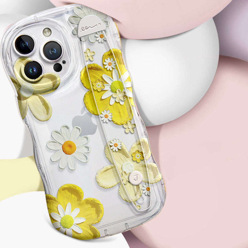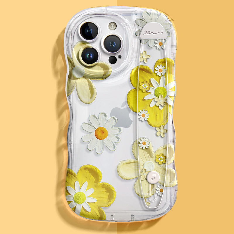 iPhone Series | “Daisy” Design Anti-fall Soft Silicone Transparent Wristband Phone Case