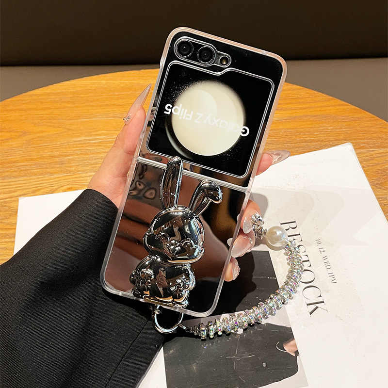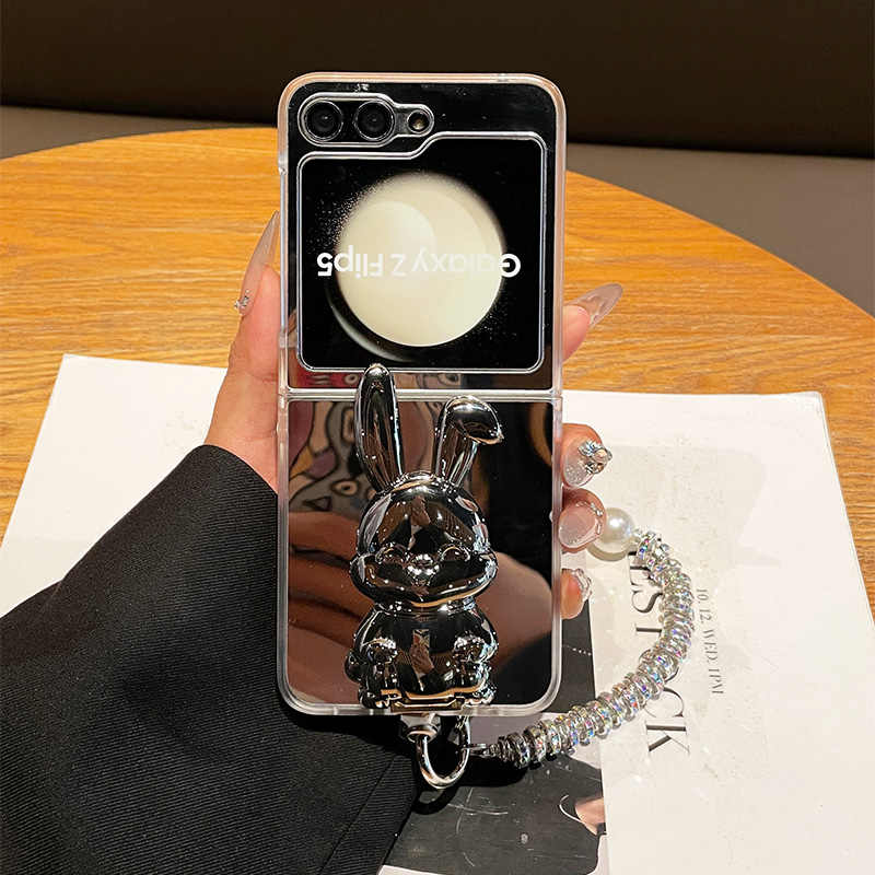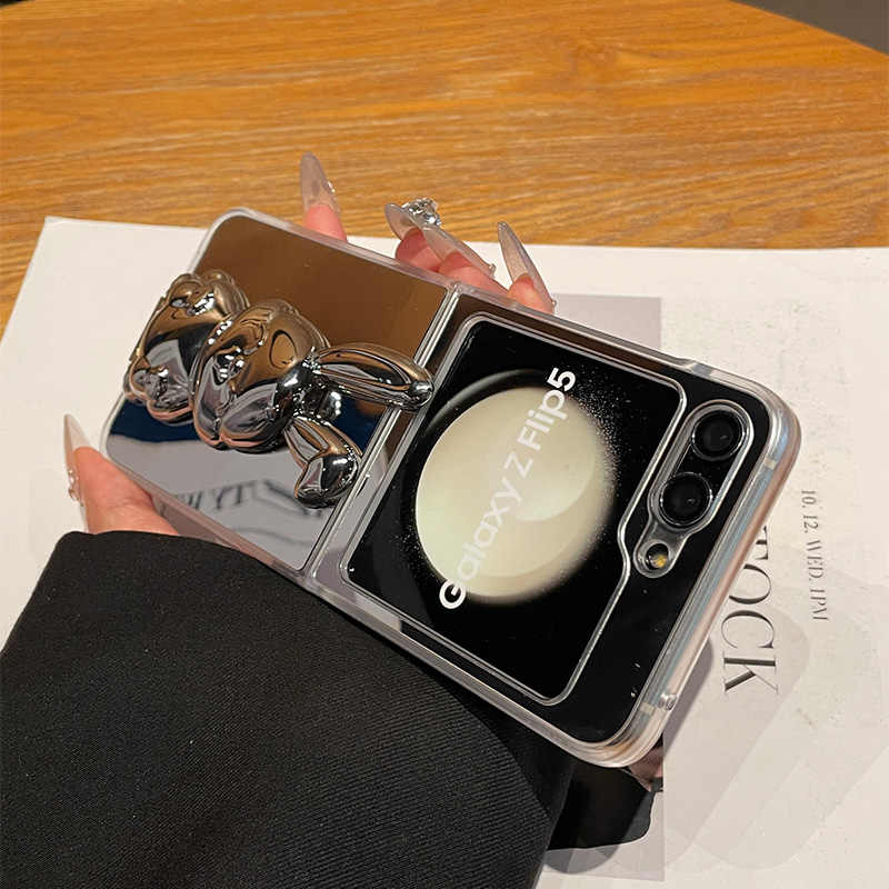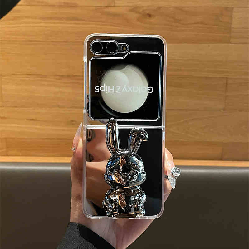 Silver Rabbit Mirror Case with Bracket for Samsung Galaxy Z Flip 6/5/4